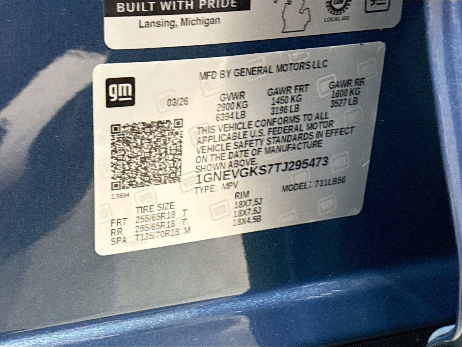 1GNEVGKS7TJ295473