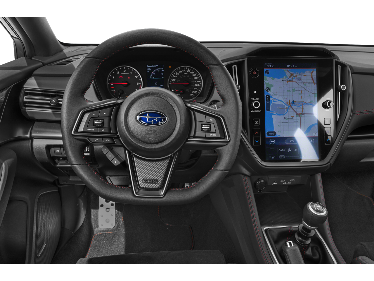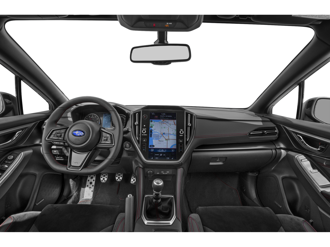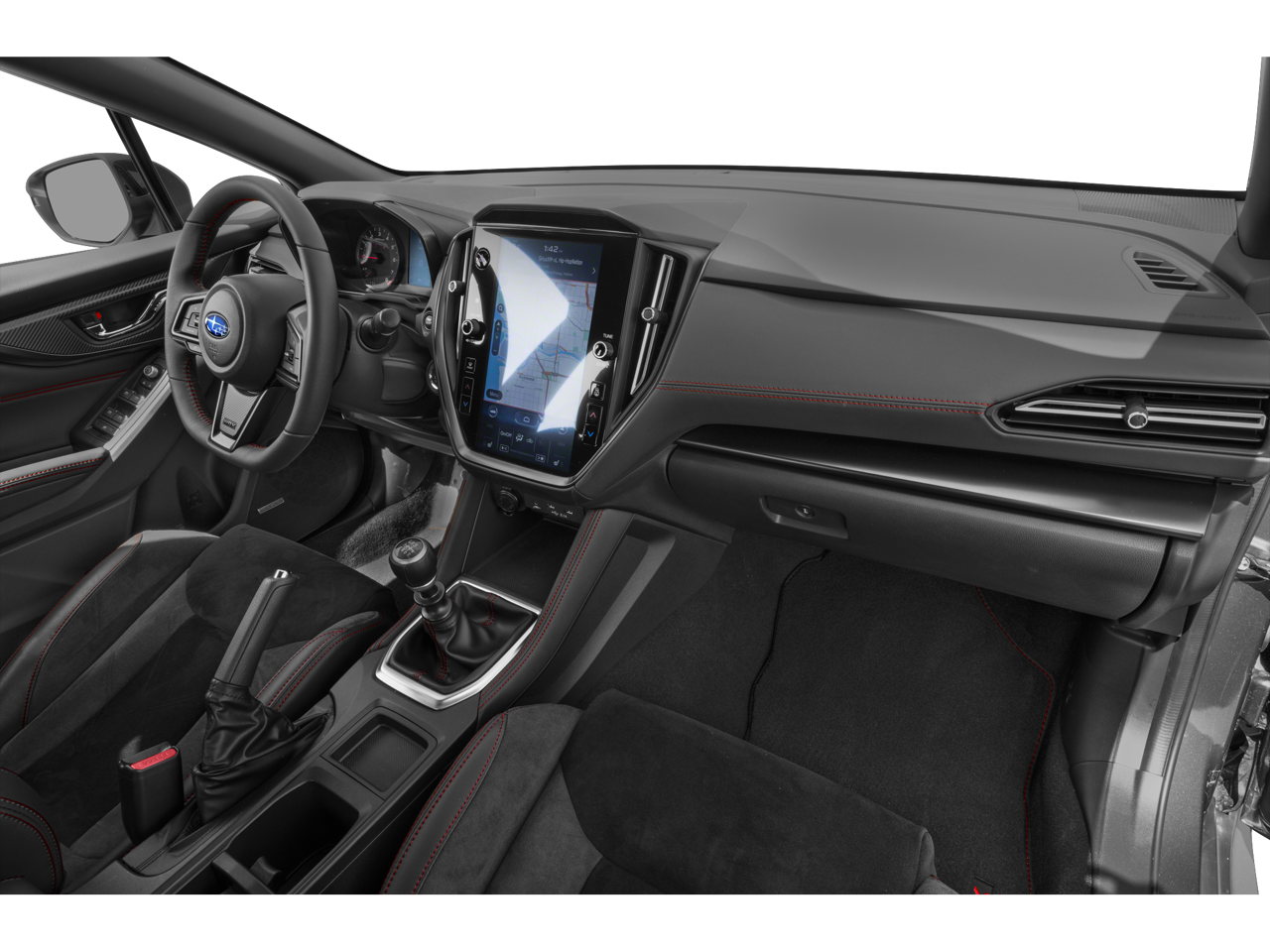 The bold, muscular exterior of the WRX Limited is highlighted by 18-inch dark gray alloy wheels, a functional hood scoop, and an aggressive rear spoiler. Step inside and you'll be greeted by a cabin that seamlessly blends sport-inspired style with premium comfort. The Ultrasuede upholstery with red contrast stitching adds a touch of sophistication, while the 11.6-inch STARLINK multimedia system with navigation keeps you connected and entertained.