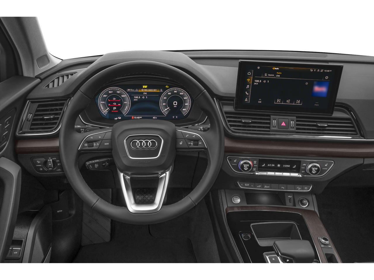 - Radio: Audi Sound System -inc: Audi smartphone interface w/wireless Apple CarPlay, preparation for mobile phone (Bluetooth®), MMI touch display w/10.1" center screen and 2 rear USB charge ports