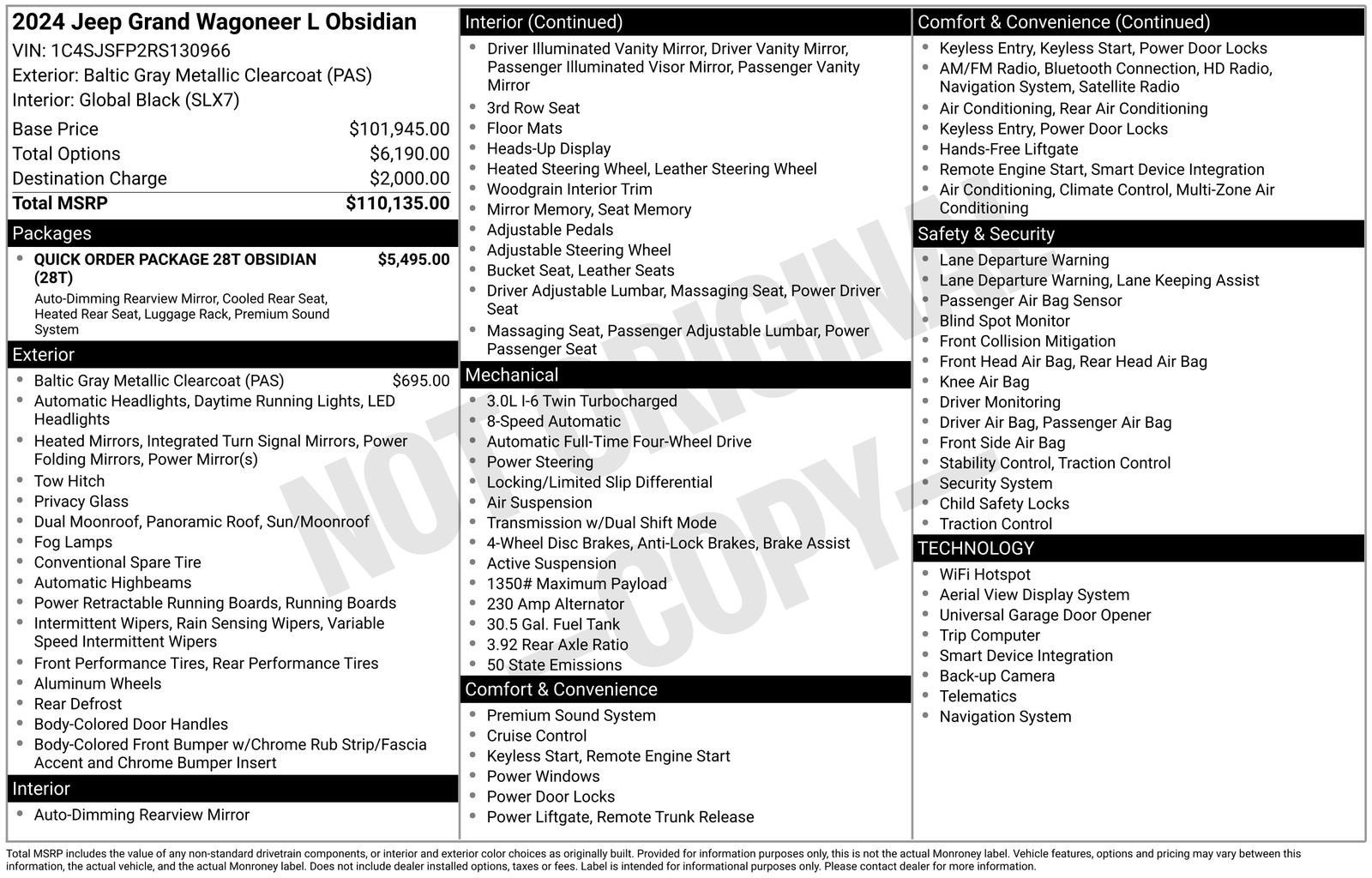 Safety and convenience are at the forefront of this Grand Wagoneer L, with features like the Heads-Up Display, Rearview Autodim Digital Display Mirror, and the comprehensive suite of advanced driver-assistance technologies. Enjoy the peace of mind that comes with knowing you and your passengers are well-protected on every journey.