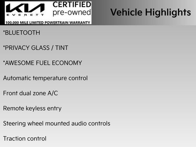 *KIA FACTORY CERTIFIED*, *SAVE WITH THE SAME NEW CAR EXPERIENCE AND PEACE OF MIND, *ONE-OWNER, *HYBRID, *FWD, *COLLISION AVAOIDANCE SYSTEM, *CONCERT-LIKE SOUND SYSTEM, *APPLE CARPLAY, *Bluetooth®, *PRIVACY GLASS / TINT, *AWESOME FUEL ECONOMY, Kia Certified Pre-Owned Certified, 1.6L I4 DGI Hybrid DOHC 16V LEV3-SULEV30, Aurora Black, Charcoal Cloth, Automatic temperature control, Brake assist, Delay-off headlights, Electronic Stability Control, Exterior Parking Camera Rear, Front dual zone A/C, Fully automatic headlights, Illuminated entry, Remote keyless entry, Security system, Split folding rear seat, Steering wheel mounted audio controls, Telescoping steering wheel, Tilt steering wheel, Traction control, 4-Wheel Disc Brakes, 4.438 Axle Ratio, 6 Speakers, ABS brakes, Air Conditioning, Alloy wheels, AM/FM radio, Auto High-beam Headlights, Bumpers: body-color, Cargo Net, Cargo Tray, Carpet Floor Mats, Cloth-Trimmed Seats, Driver door bin, Driver vanity mirror, Dual front impact airbags, Dual front side impact airbags, Four wheel independent suspension, Front anti-roll bar, Front Bucket Seats, Heated door mirrors, Knee airbag, Low tire pressure warning, LX Roof Rails, Mud Guards, Occupant sensing airbag, Outside temperature display, Overhead airbag, Overhead console, Passenger door bin, Passenger vanity mirror, Power door mirrors, Power steering, Power windows, Rear anti-roll bar, Rear window defroster, Rear window wiper, Speed control, Spoiler, Trip computer, Variably intermittent wipers, Wheel Locks, 1.6L I4 DGI Hybrid DOHC 16V LEV3-SULEV30, Aurora Black, Charcoal Cloth, Automatic temperature control, Brake assist, Delay-off headlights, Electronic Stability Control, Exterior Parking Camera Rear, Front dual zone A/C, Fully automatic headlights, Illuminated entry, Remote keyless entry, Security system, Split folding rear seat, Steering wheel mounted audio controls, Telescoping steering wheel, Tilt steering wheel, Traction control.