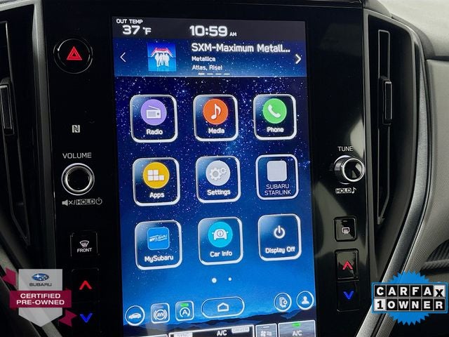 - Radio: Subaru STARLINK 11.6" Multimedia Plus Sys -inc: AM/FM stereo, HD Radio, multi-touch gesture high resolution display screen, voice activated controls, Bluetooth® audio streaming and hands-free phone connectivity, Bluetooth® hands-free SMS text messaging connectivity, iPod control capability, SiriusXM All Access Radio (4 months free trial included/subscription required after), SiriusXM Travel Link (4 months free trial included/subscription required after), smartphone integration: Android Auto and Apple CarPlay w/full screen view and wireless connection, USB and Over The Air (OTA) audio system update, steering wheel audio system and Bluetooth® control switches, 6 speakers (2 dash panel tweeter, 2 front door and 2 rear door), illuminated 3.5mm auxiliary input jack, illuminated front USB A and C input/charge ports and illuminated rear USB A and C charge ports