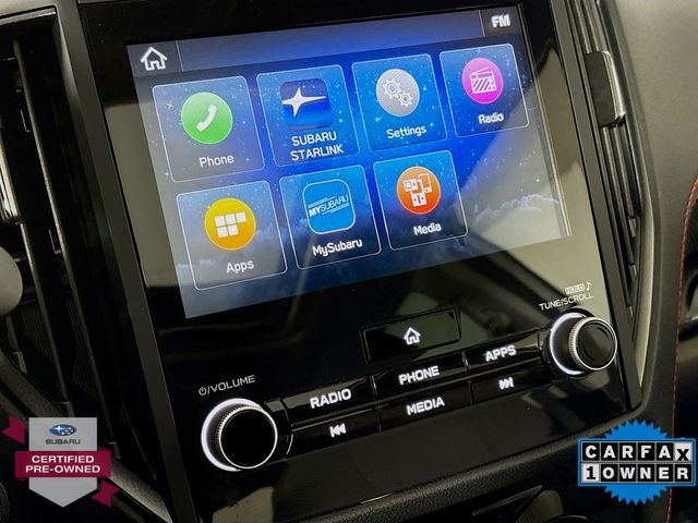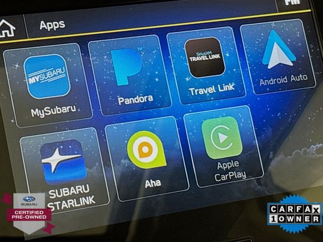 - Radio: Subaru STARLINK 6.5" Multimedia Plus System -inc: AM/FM stereo HD Radio, multi-touch gesture high resolution display screen, voice activated controls, Bluetooth® audio streaming, hands-free phone connectivity and hands-free SMS text messaging connectivity (refer to subaru.com for cell phone compatibility), iPod control capability, SiriusXM All Access radio and SiriusXM Travel Link (4 months free trial/subscription required after), smartphone integration for AHA, Android Auto, Apple CarPlay, Pandora and STARLINK cloud applications (refer to subaru.com for app availability), USB audio system update, steering wheel controls for audio and Bluetooth®, 6 speakers, 3.5mm auxiliary input jack and dual USB A input/charge ports