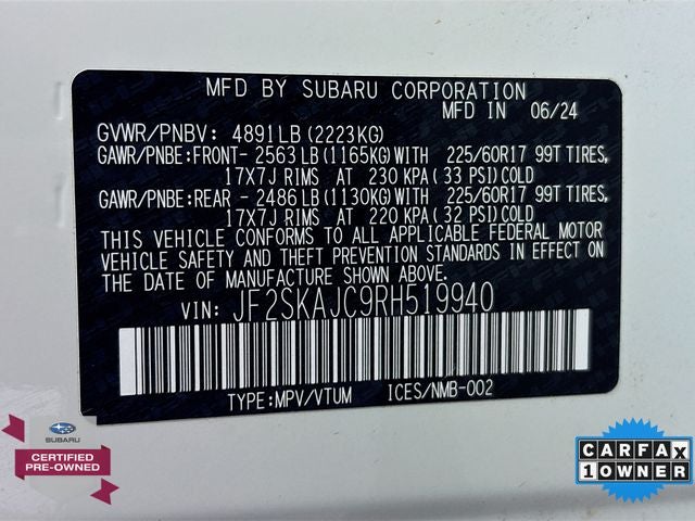 Subaru Certified Pre-Owned vehicles come with a comprehensive 152-point inspection, Roadside Assistance, and a Powertrain Limited Warranty of 84 months/100,000 miles from the original in-service date. Plus, you'll enjoy a 3-month SiriusXM trial subscription, a $500 Owner Loyalty coupon, and a 1-year trial subscription to STARLINK.