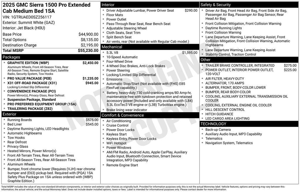 10-Speed Automatic, 4WD, Black Cloth, Automatic Emergency Braking, Fully automatic headlights, HD Rear Vision Camera, Heated Power-Adjustable Outside Mirrors, Lane Keep Assist w/Lane Departure Warning, Spray-On Pickup Bedliner, Wireless Apple CarPlay/Wireless Android Auto.