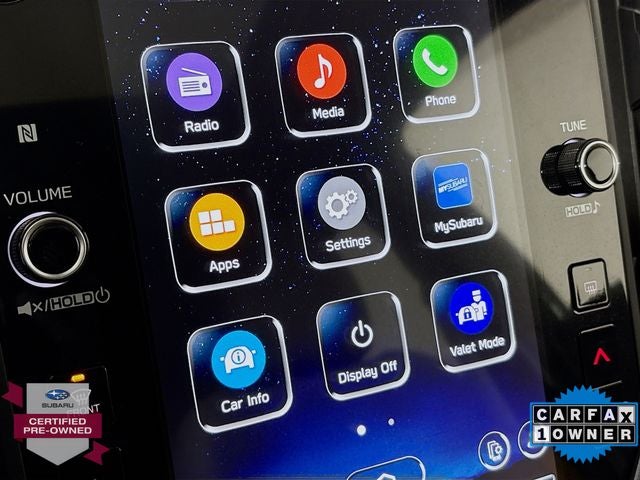 - Radio: Subaru 11.6" Multimedia Plus System -inc: AM/FM stereo, HD Radio, multi-touch gesture high resolution display screen, voice activated controls, Bluetooth® audio streaming and hands-free phone connectivity, Bluetooth® hands-free SMS text messaging connectivity, iPod control capability, SiriusXM w/360L (4 months free trial included/subscription required after), SiriusXM Travel Link (4 months free trial included/subscription required after), smartphone integration: Android Auto and Apple CarPlay w/full screen view and wireless connection, USB and Over The Air (OTA) audio system update, steering wheel audio system and Bluetooth® control switches, 6 speakers (2 dash panel tweeter, 2 front door and 2 rear door), illuminated 3.5mm auxiliary input jack, illuminated front USB A and C input/charge ports and illuminated rear USB A and C charge ports