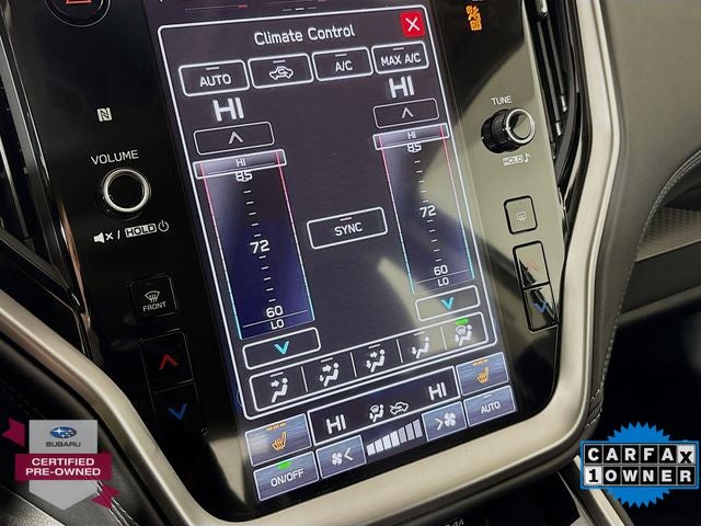 - Radio: Subaru 11.6" Multimedia Plus System -inc: AM/FM stereo, HD Radio, valet mode, multi-touch gesture high resolution display screen, voice activated controls, Bluetooth® audio streaming and hands-free phone connectivity w/SMS text messaging (refer to subaru.com for cell phone compatibility), Near Field Communication (NFC), iPod control capability, SiriusXM w/360L (4 months free trial/subscription required after), SiriusXM Travel Link (3 years free trial/subscription required after), smartphone integration w/full screen view and wireless connection for Android Auto and Apple CarPlay, USB and Over The Air (OTA) audio system update, audio/Bluetooth® steering wheel control switches, 6 speakers, 3.5mm illuminated front auxiliary input jack, illuminated front and rear USB-A and USB-C input/charge ports and roof mounted satellite and connected services