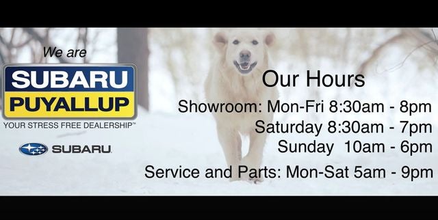 Experience the Stress-Free difference at Subaru of Puyallup! As one of the top dealers in the Northwest, we make buying a vehicle easy and exciting. Enjoy Care-Free Maintenance, No-Worry Warranties, Exclusive Accessory Discounts, and an awesome Referral Program!